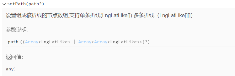 绘制折线 AMap.Polyline,同上,首次 点击创建折线实例并添加到地图实例中,第二次 点击,该折线实例必定存在,则无需重复创建折线实例。这里使用 Polyline API 提供的 setPath() 成员函数,该成员函数接受组成该折线的 节点数组