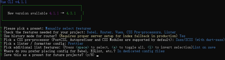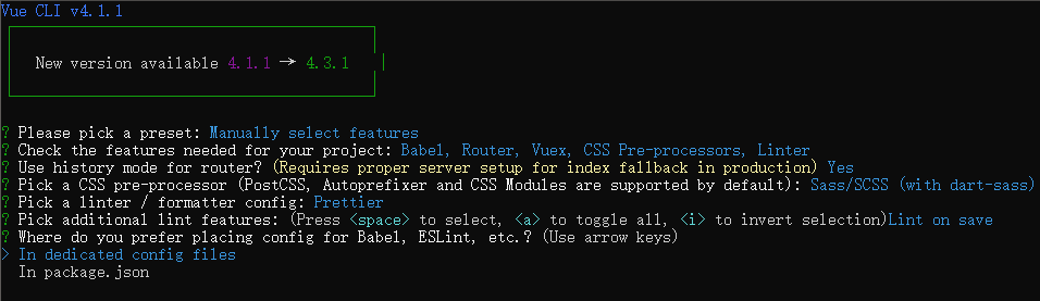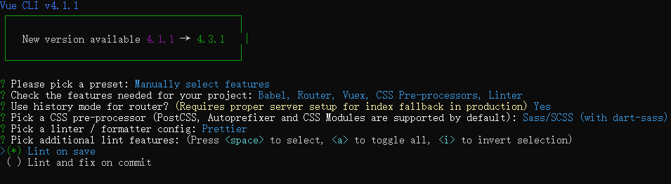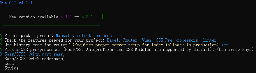 使用 vue-cli 搭建项目时,目前还没有 stylelint 选项,需要我们自己安装相关的 npm 包