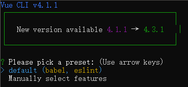default是默认选项,后面的babel,eslint表示只会引入这两个Manully select features是手动选择