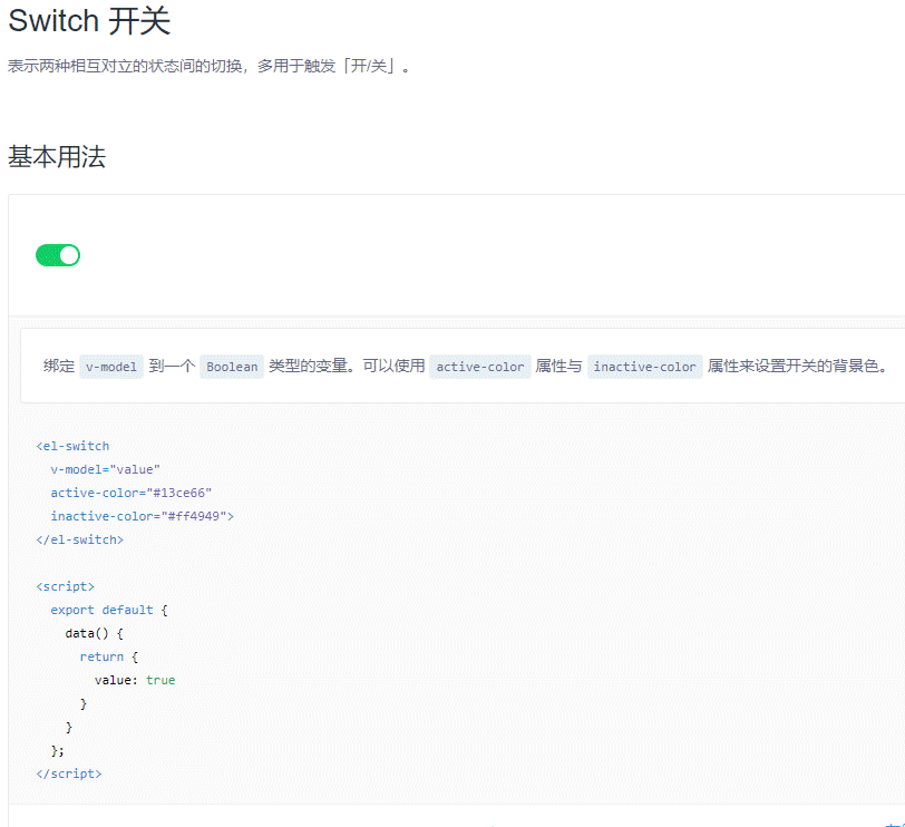| inactive-color | switch 关闭时的背景色 | string | — | #C0CCDA |